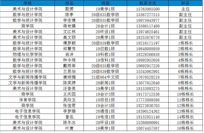 2021-2022届学生公寓自管委名单公示