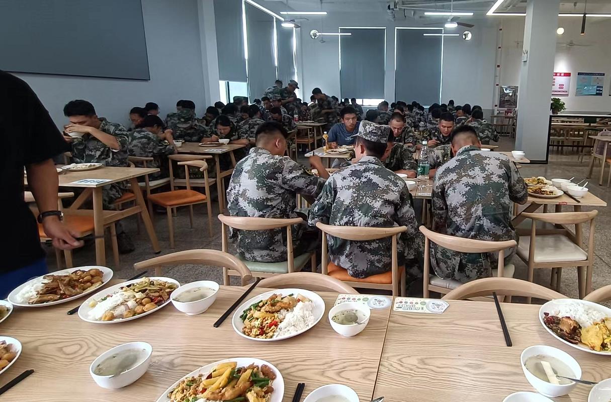 9月8日上午,学校武装部部长张福国、副部长成夏炎到各学院军训连队检查指导军训工作,看望慰问参训学生和军训教官。中午张福国一行来到食堂了解军训工作人员用餐情况,与教官共进午餐,深入了解他们的训练、生活情况。