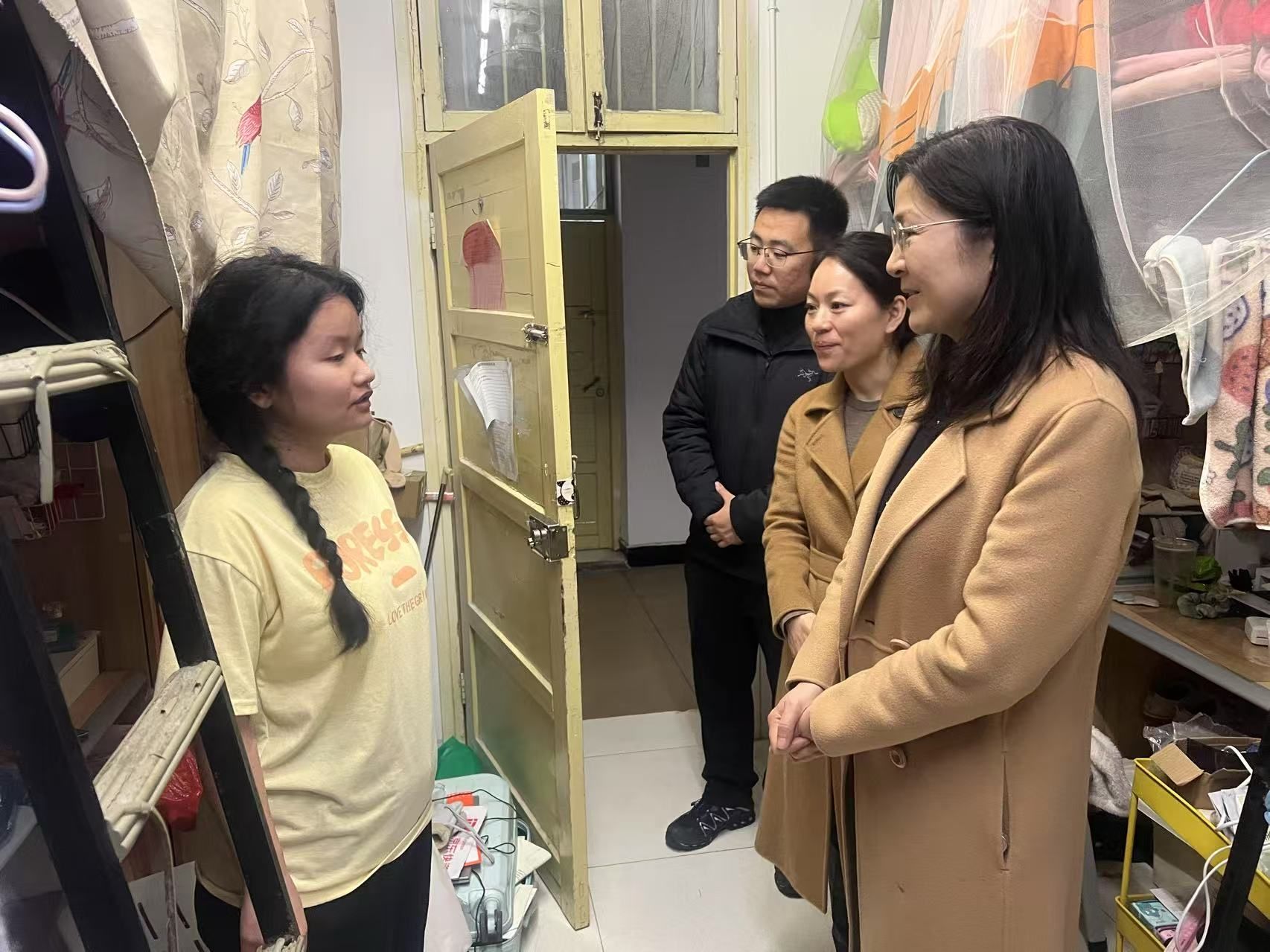 2月27日晚,校党委委员、副校长蒋蓉来到葵园餐厅与城南书院院西藏班学生共同庆祝藏族古突节,蒋校长亲切的向同学们致以节日的祝贺并给大家送上新年礼物,学院党委书记李宣平,院长曾晓洁,副书记马青梅,辅导员于智鹏,阳丽,贺璐陪同参与活动。随后,蒋校长来到了21级毕业班同学寝室,详细询问了实习、考研情况和就业计划,鼓励同学们做好充足的准备,保持积极的态度迎接新的挑战。