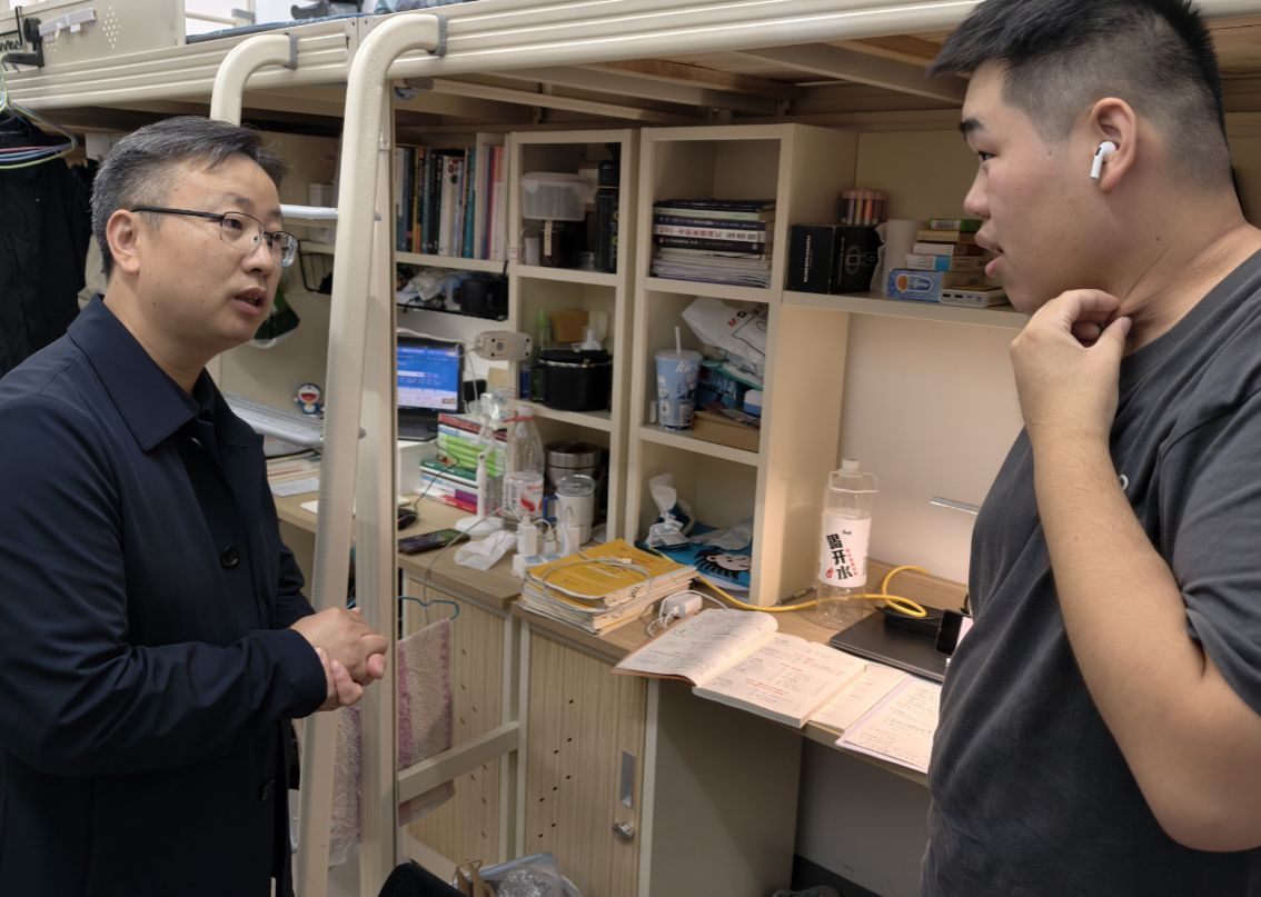 走进电信学院、计算机学院学生宿舍,石校长叮嘱同学们注意宿舍安全与通风,鼓励大家互帮互助、共同进步。叮嘱学生干部积极发挥带头作用,提升身边同学的安全意识与实践能力。