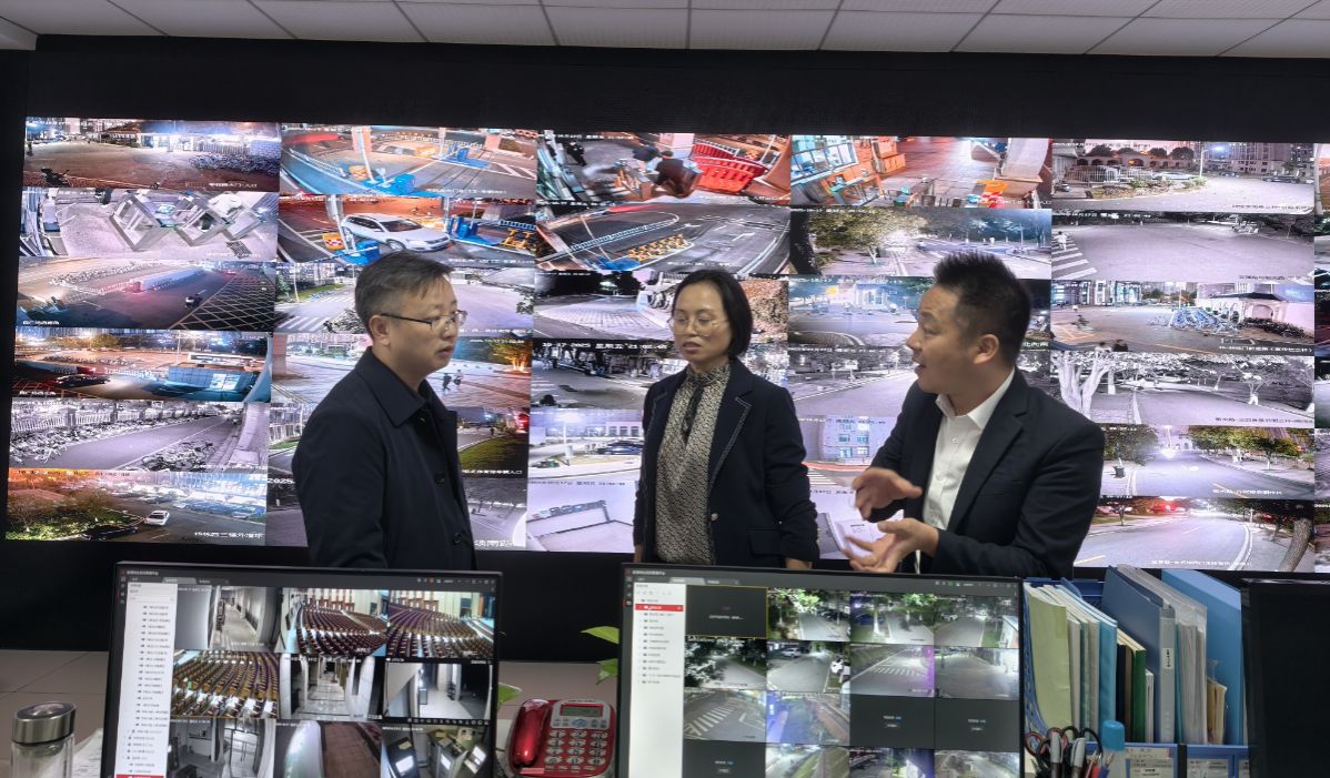 在技防中心,石校长重点检查了监控室与智慧消防管理平台。要求确保监控“无死角”,实现人员从进校、校内活动到出校全程监控,并加强监控安保人员应急培训与24小时值班,提升应急突出能力,筑牢技防安全网。