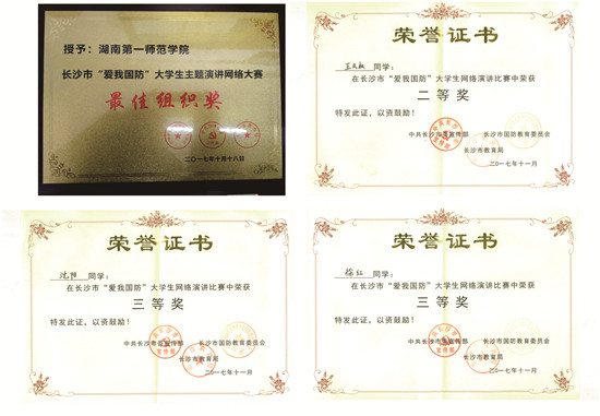 在长沙市全民国防教育委员会、中共长沙市委宣传部、长沙市教育局联合主办的长沙市“爱我国防”大学生网络演讲比赛中,我校积极发动、组织学生参赛。经过学院推荐、BETVLCTOR伟德在线(处)组织专家团队评审,共推荐六件作品参赛,最终我校荣获最佳组织奖;数学与计算科学学院王文权获得二等奖,文学与新闻传播学院徐红、沈阳分别获得三等奖。