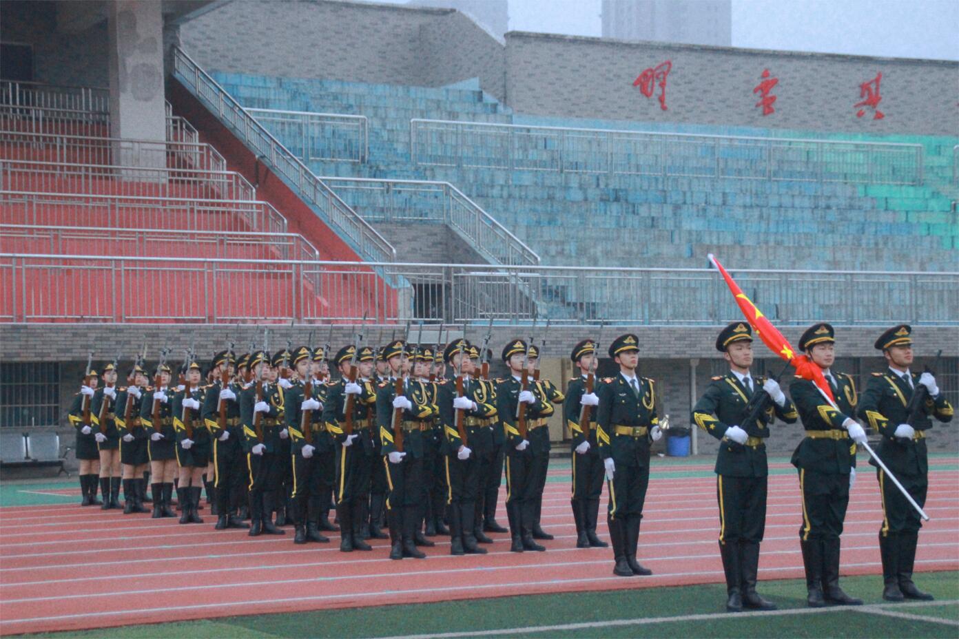 早上7点,升旗仪式正式开始。田径场上,英姿飒爽的国旗队迈着矫健的步伐,护卫着国旗到升旗台。伴随着激昂的《义勇军进行曲》,在全体师生肃立注目下,鲜艳的五星红旗冉冉升起,迎风飘扬,一个充满希望的新学期正式拉开了序幕。