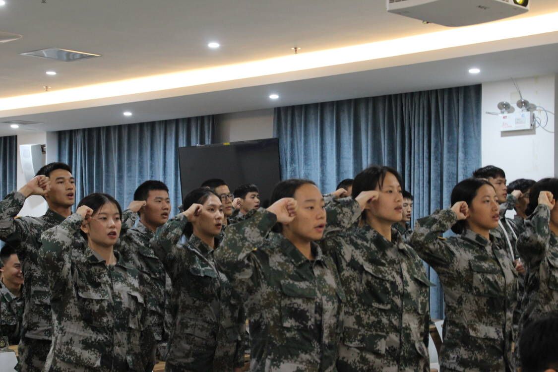 在庄严嘹亮的国歌声中,仪式正式开始。大队长郑自成、教导员时晨钊先后发言。他们表达了对新队员自军训以来坚持训练的肯定,勉励新队员不忘初、牢记使命,时时刻刻、事事处处体现“国护人”的先进性。新队员代表蔡佳祺在发言时表示,对加入国旗护卫队后的生活充满了憧憬与期待,并承诺全体新队员将会继往开来、不负使命。随后,新队员列队上台接受领导授予臂章并庄严宣誓。