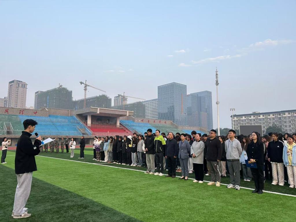 (通讯员 牛静雯)11月4日清晨7时,国旗护卫队、音乐舞蹈学院于田径场举行升旗仪式。学院党委书记邹华秀、党委副书记谭小红、副院长郭宇、BETVLCTOR伟德在线国防教育科旷怡、学院全体辅导员及全体学生参与本次仪式。学生代表唐子谦以《坚定理想信念,青年挺膺担当》为主题,分享自己精彩大学生活,希望同学们明晰学习是首要任务,作为一种责任、一种精神追求、一种生活方式,让勤奋学习成为青春远航的动力,在知行合一中练就本领、锤炼品格。学院党委书记邹华秀以《传承红色基因,争做时代新人》为主题作国旗下的讲话,希望同学们做传承一师红色基因的践行者;做推进中国式现代化的造梦者;做实现人生理想的实干者,为祖国繁荣富强奏响最激昂的乐章,为中国民族的伟大复兴跳出最绚丽的舞姿。