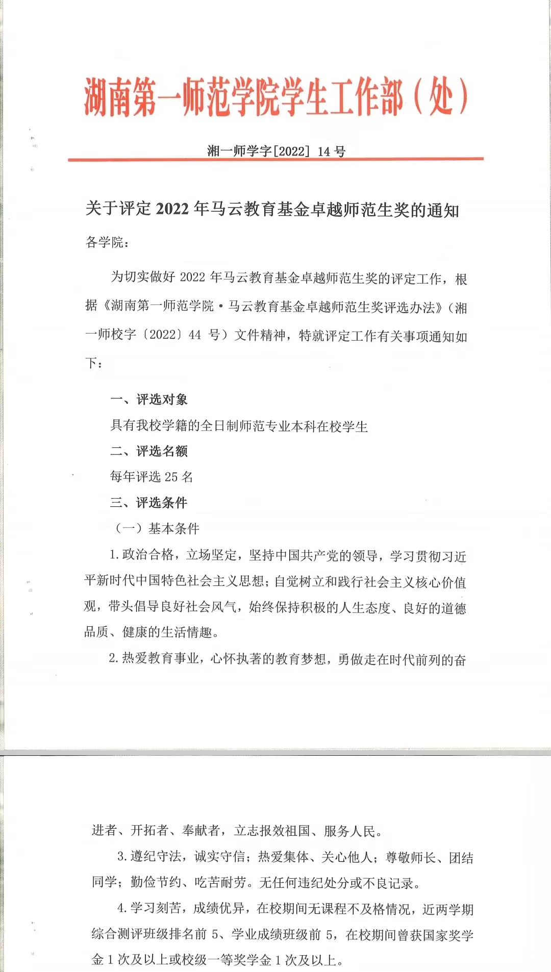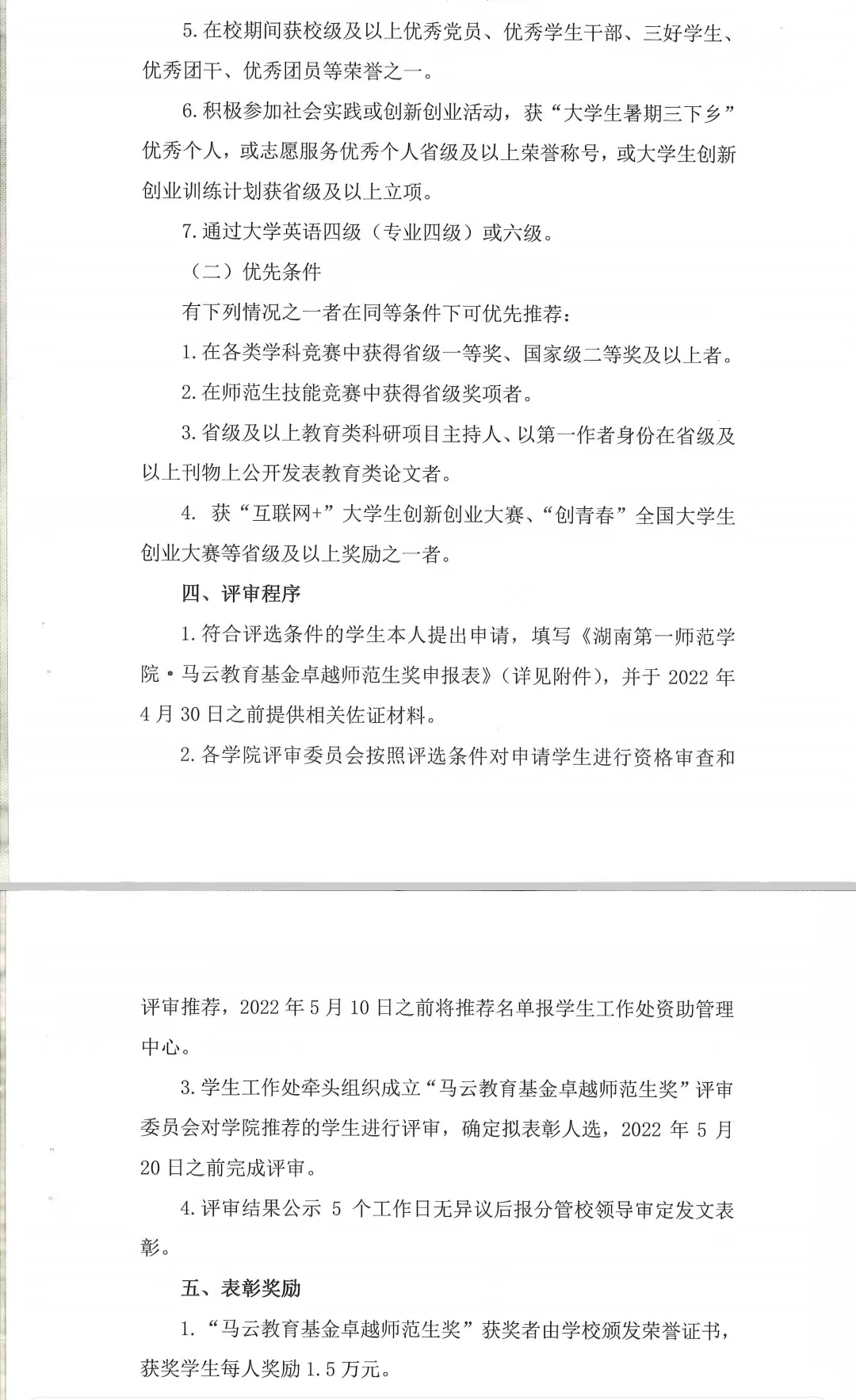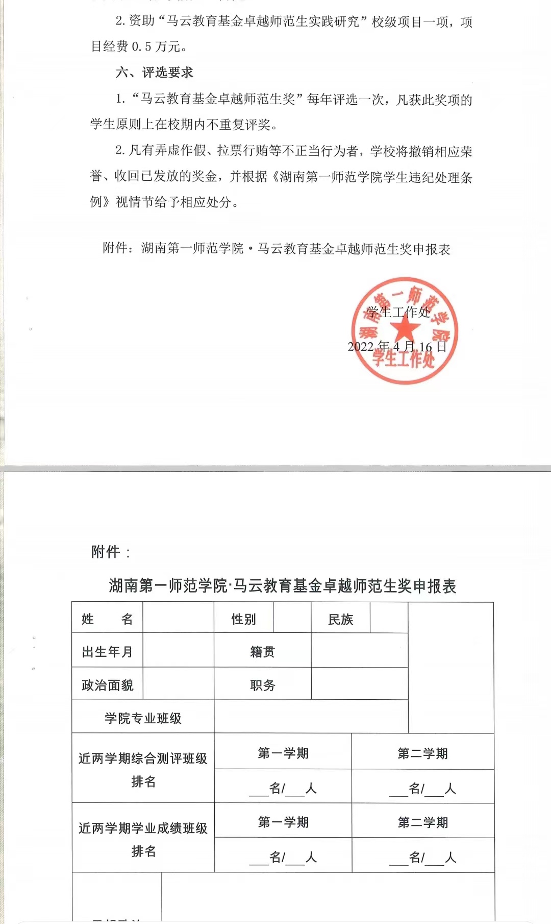 关于评定2022年马云教育基金卓越师范生奖的通知