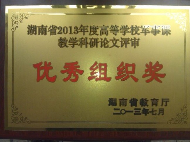 近日,由湖南省高等教育学会国防教育专业委员会举办的2013年度高等学校军事课教学科研论文年会在吉首大学举行。会上,我校荣获“湖南省2013年度高等学校军事课教学科研论文评审优秀组织奖”;我校教师欧阳斐、龙强军撰写的论文《基于校园文化建设视角下大学生国防教育新思路的探析》被评为一等奖,蒋洁、杨虎智撰写的论文《初中起点六年制本科生军事理论课程开设现状与对策研究》和舒莹莹撰写的论文《在公共课程中融入国防教育的研究》被评为二等奖,邓玉琴、刘仁煌撰写的论文《中美高校国防教育比较》和易利撰写的论文《浅谈新时期如何提高高等师范院校学生国防意识》被评为三等奖。