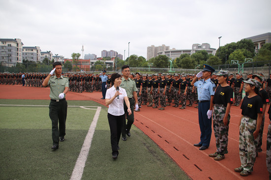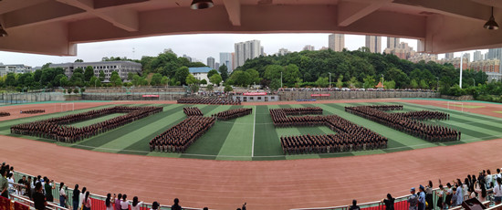 鲜艳的五星红旗迎风飘扬,嘹亮的国歌响彻一师上空,新生开学典礼暨军训总结表彰大会在全校师生庄严的注目礼中正式拉开序幕。迎校旗、院旗仪式结束后,童小娇校长对受训方阵进行检阅,同学们个个意气风发、气势昂扬,“为一师争光”的口号响彻校园上空。随后,盛大而精彩的分列式正式开始。伴随着激昂的《中国人民解放军进行曲》,2018届中招30个方阵、高招32个方阵高喊着嘹亮的口号正步走过主席台,接受主席台领导的检阅。坚定有力的步伐、整齐划一的动作,气宇轩昂的队列表演,展现了一师新一代学子蓬勃向上的精神风貌。