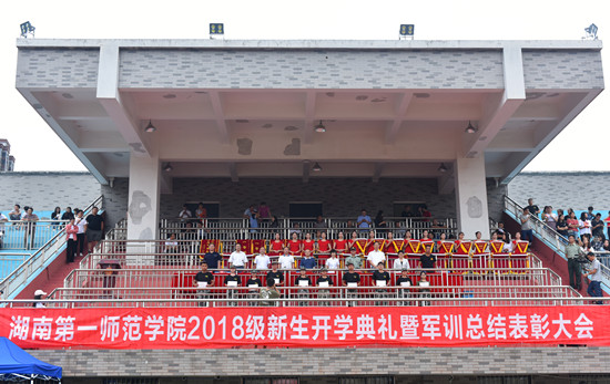 9月22日,我校2018级新生开学典礼暨军训总结表彰大会分别在东方红校区和城南书院校区田径场盛大举行。湖南省军区战备建设局后备力量组组长、省军区学生军训办汤光强主任,湖南省士官生训练基地杨文杰主任,校领导彭小奇、童小娇、刘志敏、刘鸿翔、李克勤、刘宇、李昱、江正云及相关职能部门和各学院党政负责人出席。大会由副校长刘宇主持。