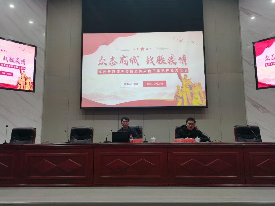 (付淑敏)为提高我校辅导员面对突发新冠肺炎疫情和传染病的日常防控和应急处理能力,1月19日上午,麓谷街道社区卫生服务中心院委委员、公卫办主任刘欢在2022年学工系统培训班作了《众志成城 战胜疫情》专题讲座。BETVLCTOR伟德在线部长张福国、副部长欧阳伶俐出席。讲座由BETVLCTOR伟德在线副部长成夏炎主持。