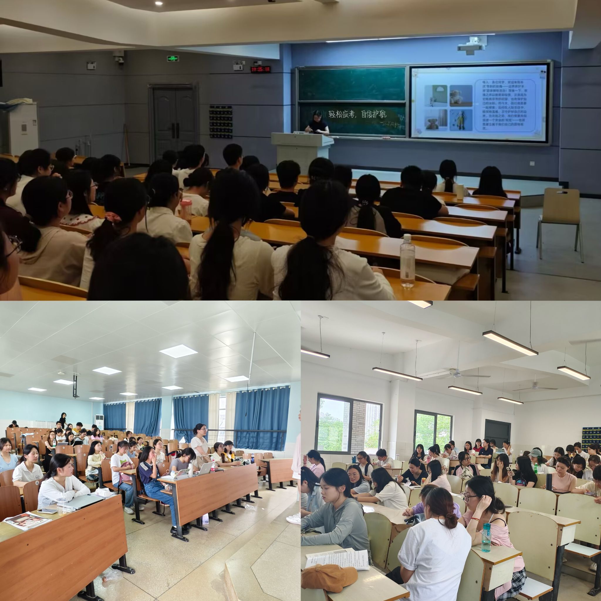 放松训练更是让同学们体验到了身心的极致舒缓。停憋呼吸法、握拳放松法,配合着轻柔的音乐和海滩意象的想象,仿佛将大家带到了一个宁静的海边。在那里,没有考前的紧张,没有对未来的焦虑,只有海风轻拂、海浪拍岸的宁静与安详。同学们闭上眼睛,深呼吸,感受着那份来自内心的平静与力量。