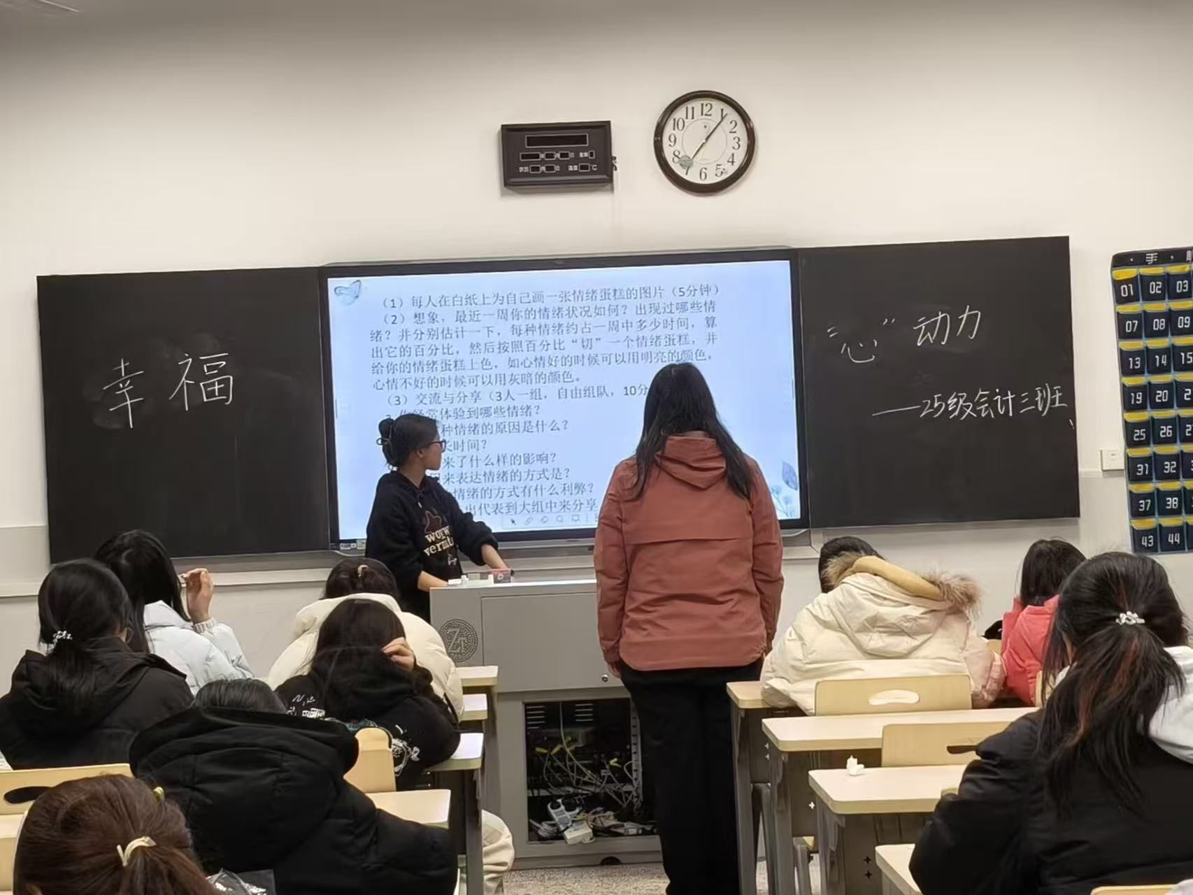 为帮助学生认识自身情绪、理解幸福内涵、掌握情绪调节技巧,营造积极健康的心理氛围,我校心理健康教育中心于2026年3月18日组织开展“幸福心动力”团体辅导活动。本次活动由心理健康教育中心肖啸老师指导,各班朋辈辅导员组织开展。