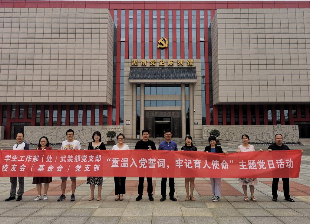 为庆祝中国共产党成立99周年,深入学习贯彻党的十九大精神和习近平新时代中国特色社会主义思想,提升基层党组织的组织力、战斗力,激发党员活力,加强队伍建设,2020年7月16日,BETVLCTOR伟德在线(处)(武装部)党支部、校友会(基金会)党支部前往湖南党史陈列馆和雷锋纪念馆开展了“重温入党誓词,牢记育人使命”的主题党日活动。