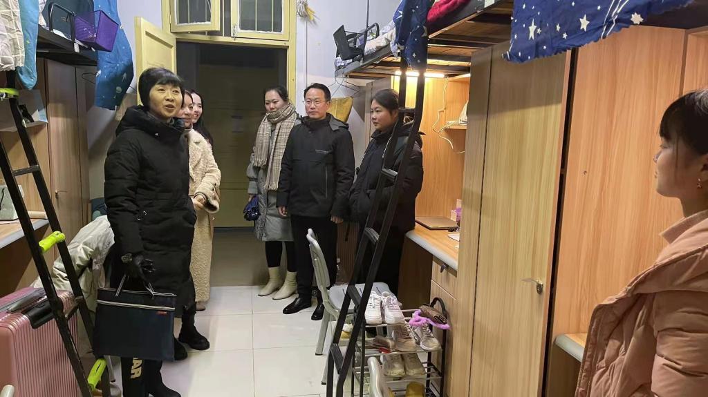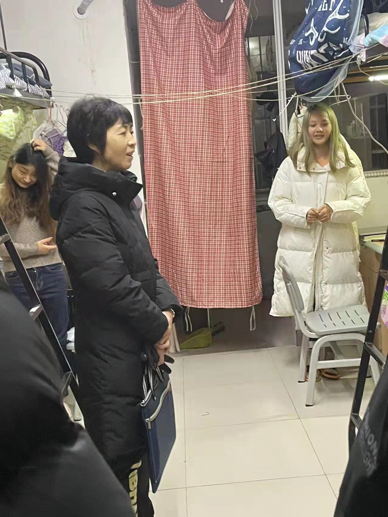 片片鹅毛雪,暖暖绕室间。2月22日晚,校长童小娇深入学生宿舍,走访看望即将毕业的学生。学工处苏郁清老师、数统院学工办主任马青梅、辅导员吉先菊、袁伟杰、电信院学工办主任付焱等随行。
