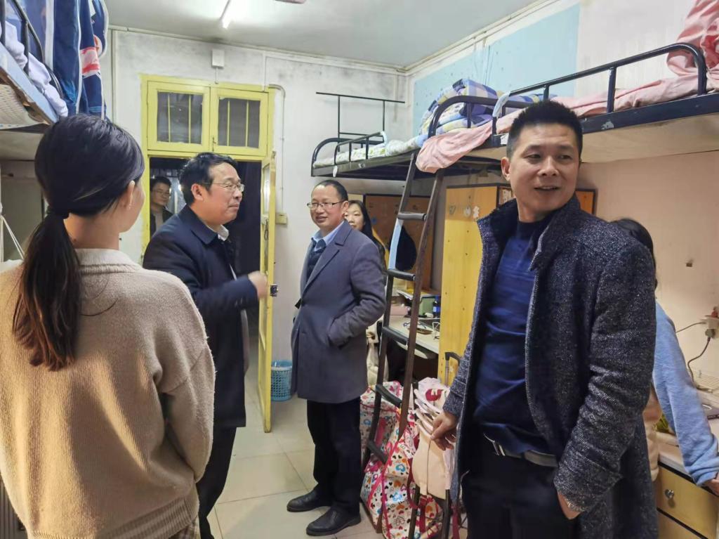 彭校长亲切地询问学生学习、生活等情况,勉励学生勤学上进,建设文明寝室;细心地观察学生公寓区的硬件设施,尤其是负一楼宿舍的环境,了解学生改善居住条件的需求;认真地了解用电、用水情况,讨论节约能耗的困境与方法。