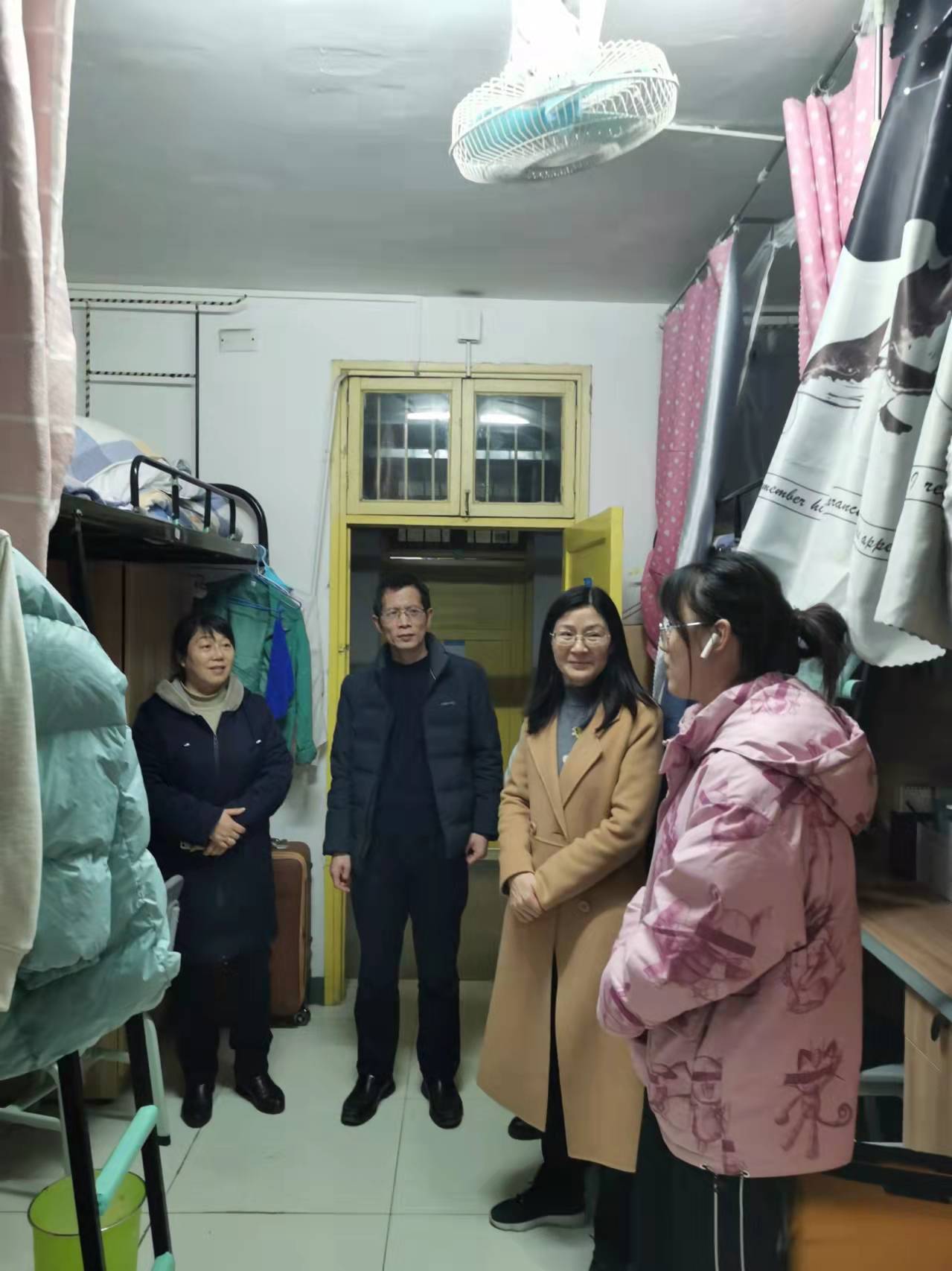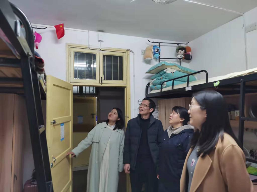 3月2日晚,蒋蓉副校长在学工处欧阳伶俐副处长、教育学院副书记张志新、教育学院辅导员邓魁、杨菲陪同下来到教育学院学生寝室、国基广场二楼辅导员办公室、百熙楼辅导员办公室、学生创新创业中心走访调研,深入了解学生学习和生活环境和辅导员办公情况。