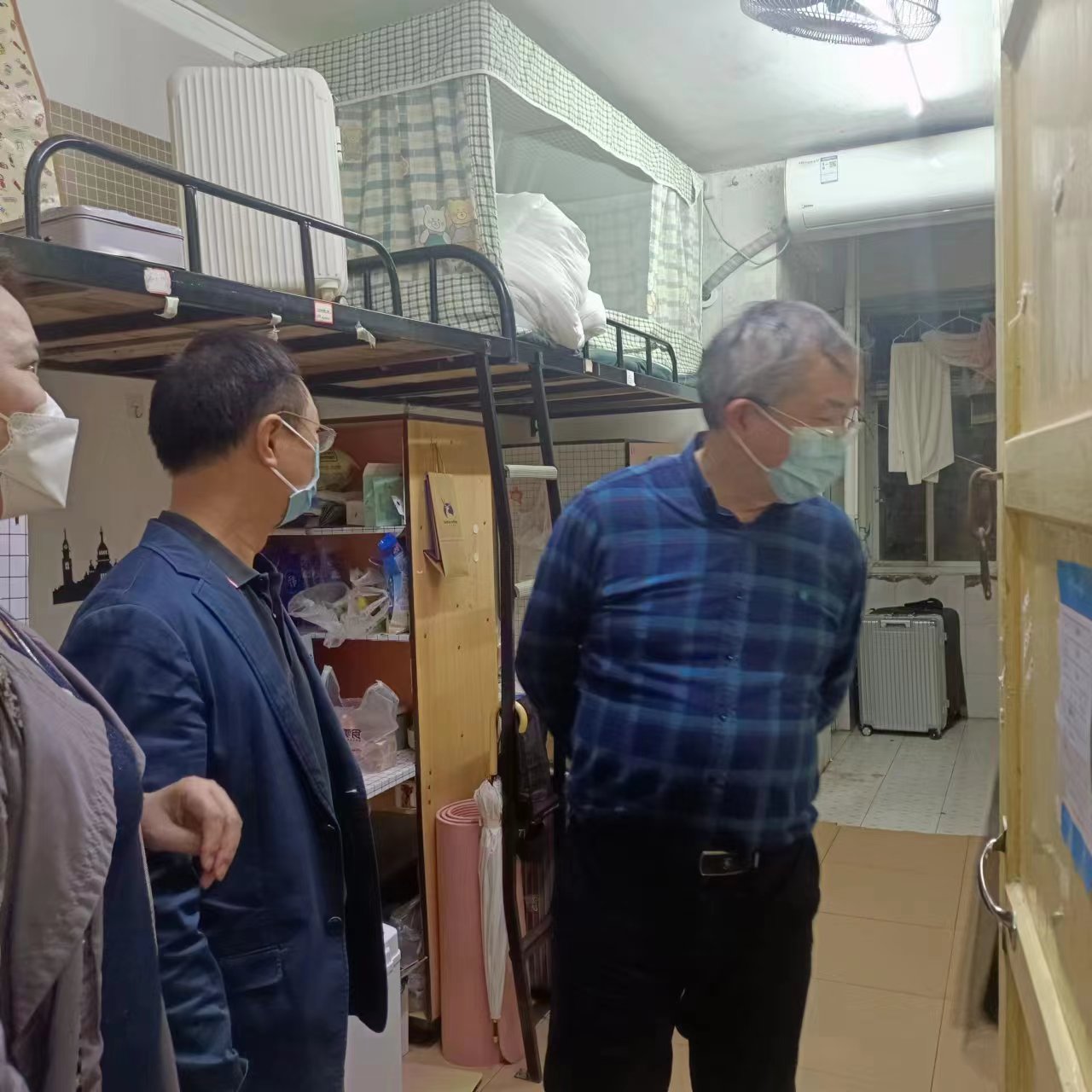 4月8日晚,曹校长在商学院副书记李辉华、学生处曾艳辉老师的陪同下,走访学生寝室、图书馆,看望在围墙值班的学生。