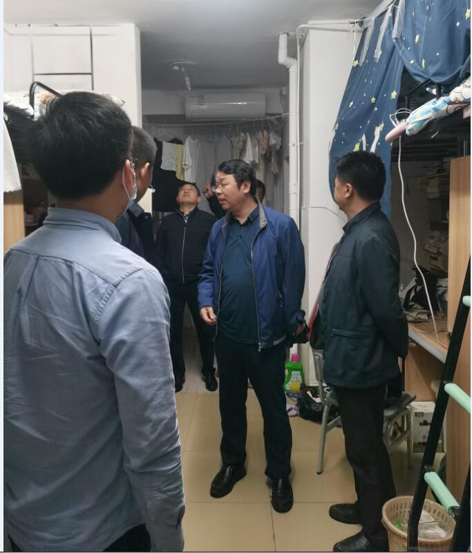 4月28日晚,气温骤降,风雨交加,然而,校党委委员,副校长彭晓辉,基建与后勤处处长周大庆,副处长成海英,学生工作处副处长成夏炎,保卫处副处长伍雁鹏,美术与设计学院党委副书记(主持工作)杨虎智,等一行的到来,让6栋714、715;7栋737、740、741等寝室的孩子们感到无比的温暖。彭校长等一行15人每到一间寝室都急切地询问同学们的困难和需要,鼓励同学们发奋学习,志存高远,尤其是一些漏水严重的寝室,更是一寝一策,立即布置解决方案,用行动阐明了我校“三聚焦,三抓实”党建引领工程的真正内涵。
