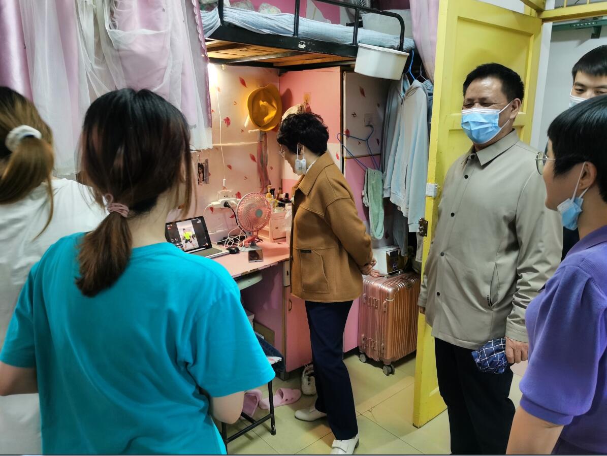 4月28日,校党委委员,纪委书记李昱带领文学与新闻传播学院党委副书记欧阳范剑,学工办主任唐科,辅导员安炜成、陈滢琪前往中职学生晚自习教室,查看孩子们晚自习的情况。随后前往学生宿舍,亲切与学生交谈,叮嘱大家要及时添衣,注意保暖。看到在宿舍运动的孩子们,李书记又亲切与孩子们分享运动经验。部分漏水的寝室,李书记也是详细了解情况,安抚学生情绪,在寒风呼啸的夜晚为孩子们送去了阵阵温暖。