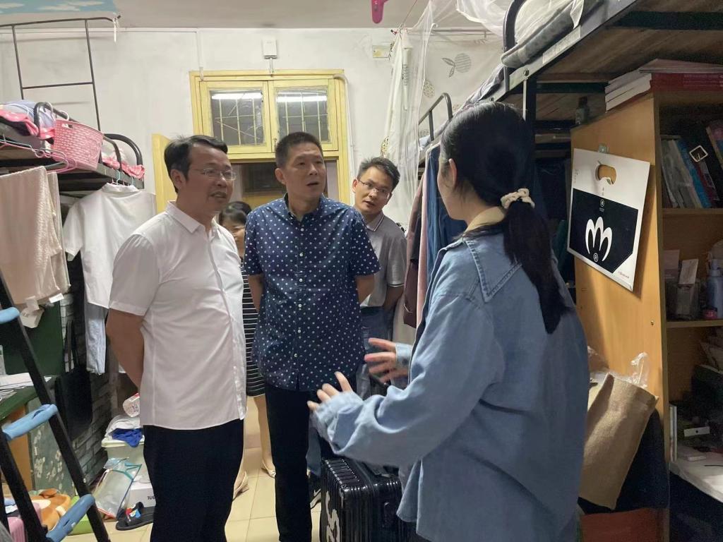6月12日晚,彭晓辉副校长带领美设院杨虎智副书记(主持工作)、戴建宇副书记、学工部许炳娜老师、辅导员汪崟走访了九栋毕业生寝室。彭校长与毕业生亲切交流,提醒同学们妥善保管好个人财物,确保安全毕业。特别关注未签约和未能按时毕业的学生,及时了解、掌握学生的思想动态,为毕业生提供针对性较强的岗位信息和上岗指导。之后,彭校长一行走访了怀中楼学生自习室,关心调研学生学习环境,指导推进学风建设。