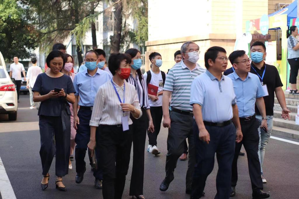 9月4日,城南书院校区新生开学,上午校党委书记罗成翼、校长童小娇、副校长曹兴、副校长蒋蓉在学工处、后勤处、财务处、城南书院等部门领导的陪同下先后来到迎新点、宿舍、食堂等地实地查看迎新情况、指导相关工作,与迎新工作人员、新生进行亲切交谈。