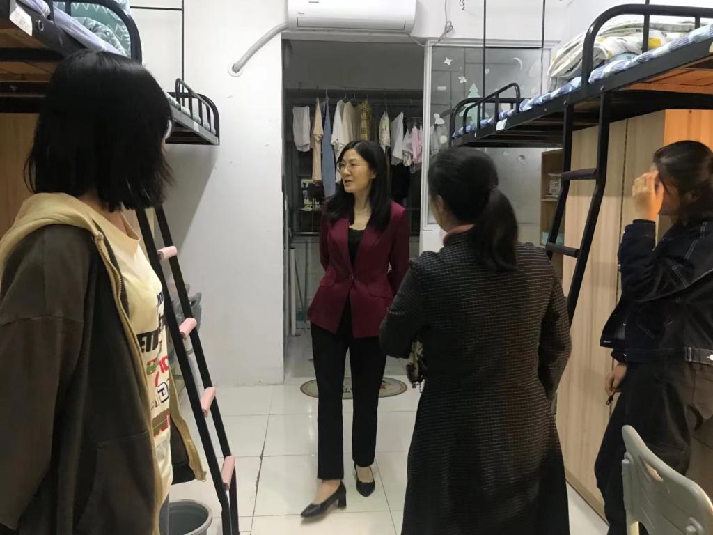 10月5日晚,校党委委员、副校长蒋蓉在学生处欧阳伶俐副处长、保卫处伍雁鹏副处长、物化院辅导员陪同下,前往学生公寓,深入了解学生学习和生活环境。