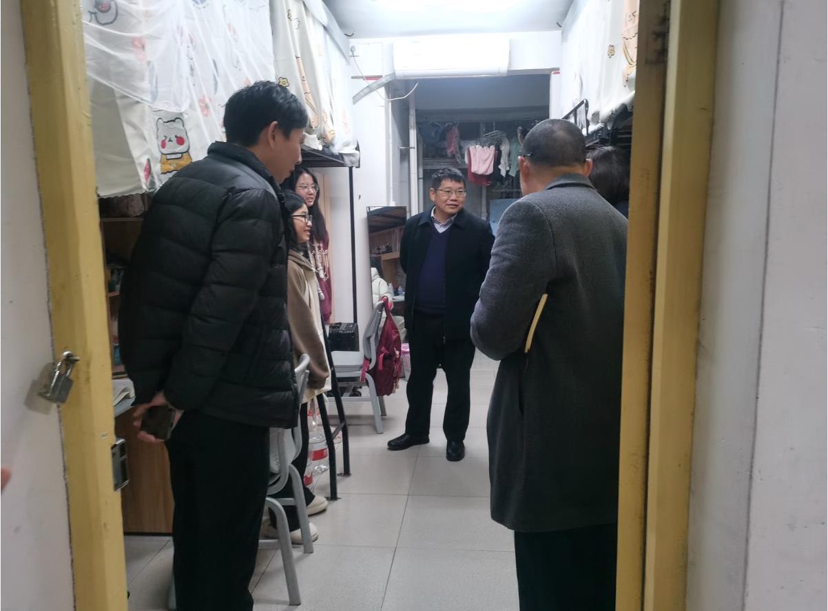 2月20日晚,党委书记罗成翼带领宣传部部长欧阳斐,教务处处长张娴,学工部部长张福国,马院党委副书记胡英以及党政办陈阳等一行,先后来到了一站式学生社区、学生公寓,怀中楼考场以及图书馆自习室,深入了解学生的生活,学习情况,每到一处,罗书记都关切地询问同学们的生活,学习,考研和就业方面存在的困难和困惑,并和同学们深入交流我校实施“两性一度”教学改革以来的教学变化。