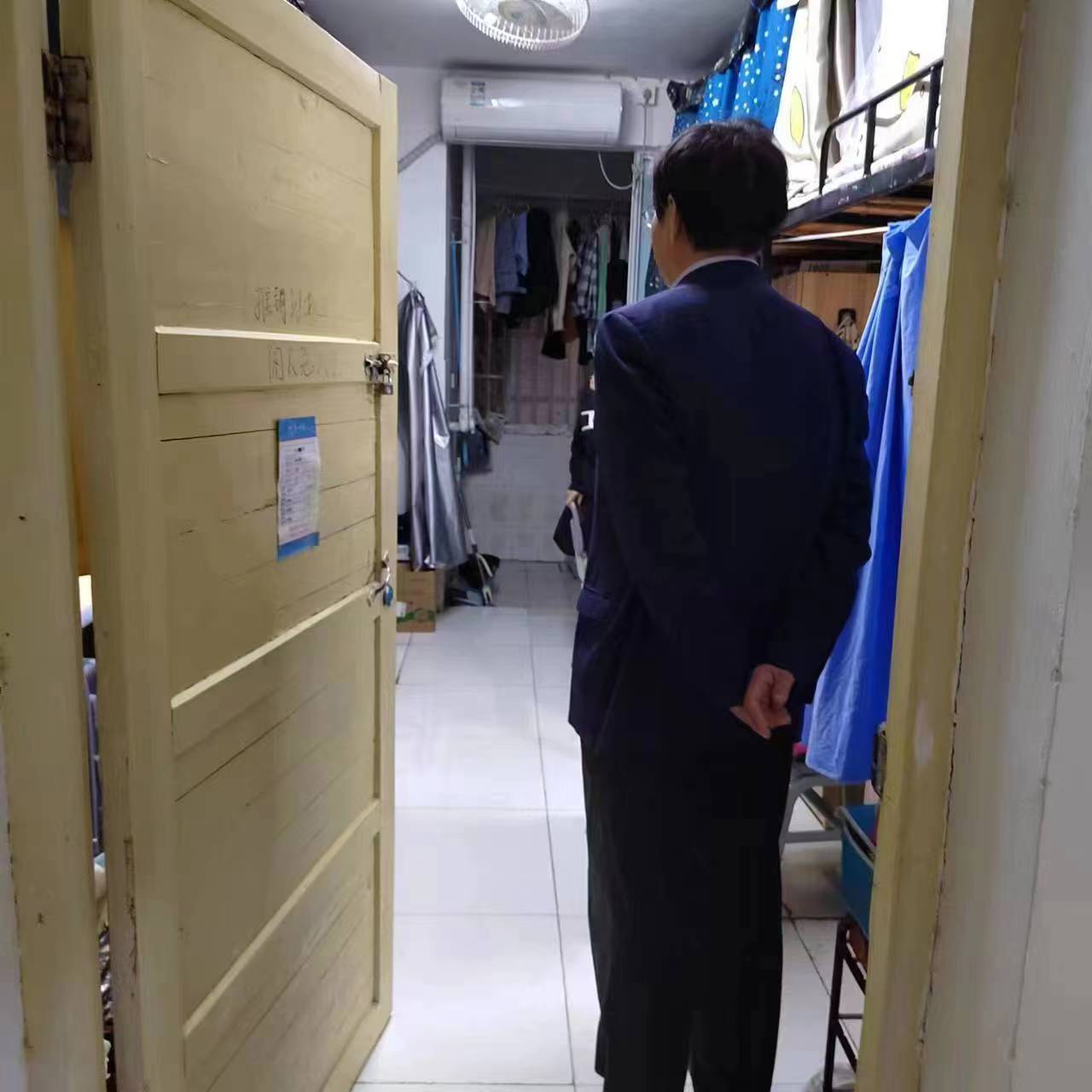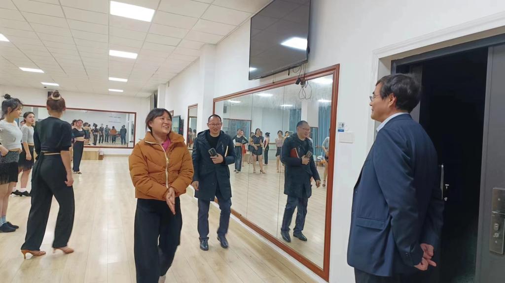 3月30日晚,学校党委委员副校长江正云带领学工部部长张福国,音乐舞蹈学院学工办主任邓志刚进行值班巡查,在一站式学生社区、国基广场、西门围墙一线,查看学生出入校园情况。走进学生寝室,查看了学生寝室内务和学习情况。到特立楼练功房检查了学生国标队员和拉丁队员的排练情况。在中轴广场,正在布展的人才双选会现场,查看用人单位招聘信息。