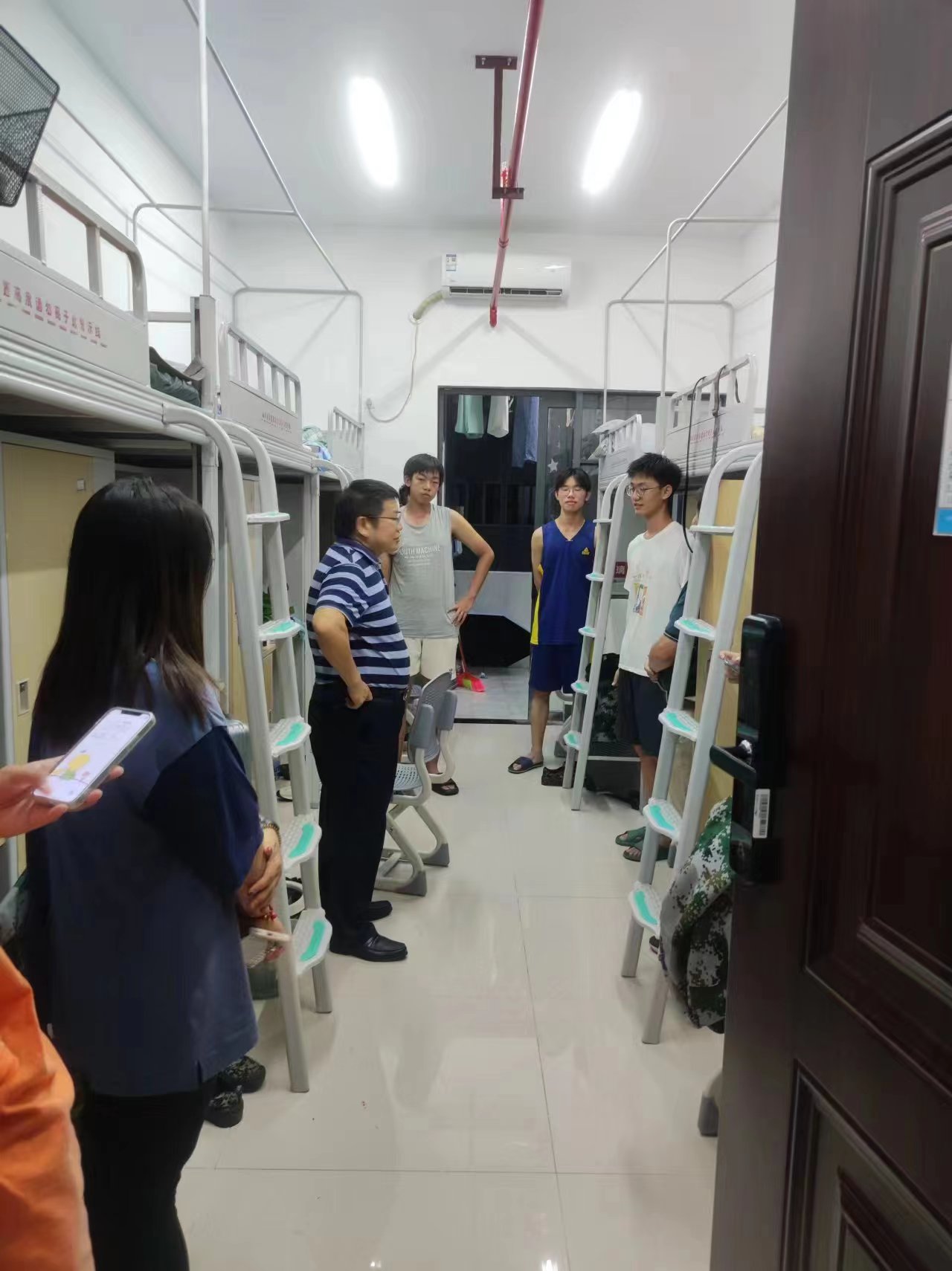 9月11日晚,校党委书记罗成翼、副校长周发明走访一站式学生社区、第17栋学生公寓。第17号栋学生公寓是我校重点建设项目,学生寝室内空调、洗衣机、热水系统等生活设施一应俱全,公寓公共区域共享打印机、售货机等公共设施完善。