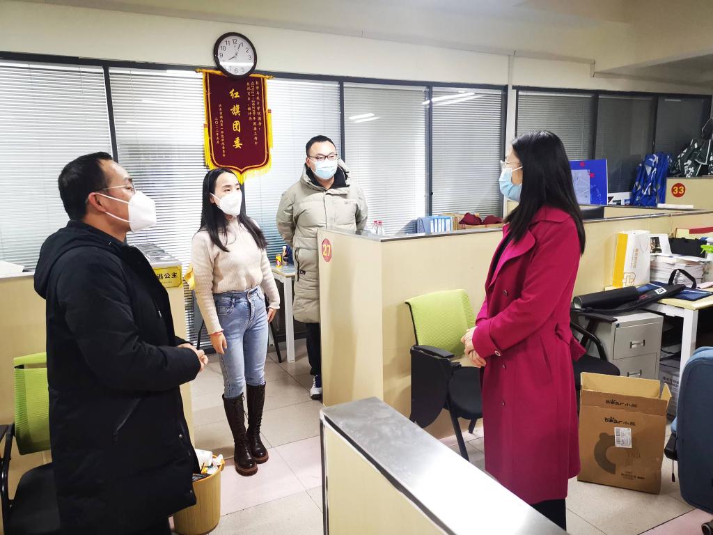 蒋校长看到同学们在寝室全神贯注、伏案疾书地复习备研,看到值班辅导员老师们在办公室积极认真、有条不紊地忘我工作,非常高兴,很是安心。她鼓励同学们坚持奋斗,胜利的彼岸就在眼前;叮嘱同学们保持身心健康,祝愿顺利地通过研究生入学考试。她感谢辅导员老师们辛勤工作,维护了校园安全;提醒包括辅导员老师在内的所有学工人要继续加强与在校学生沟通,为同学们期末的学习生活提供有力支持。