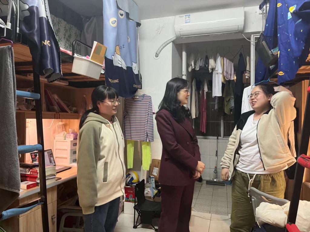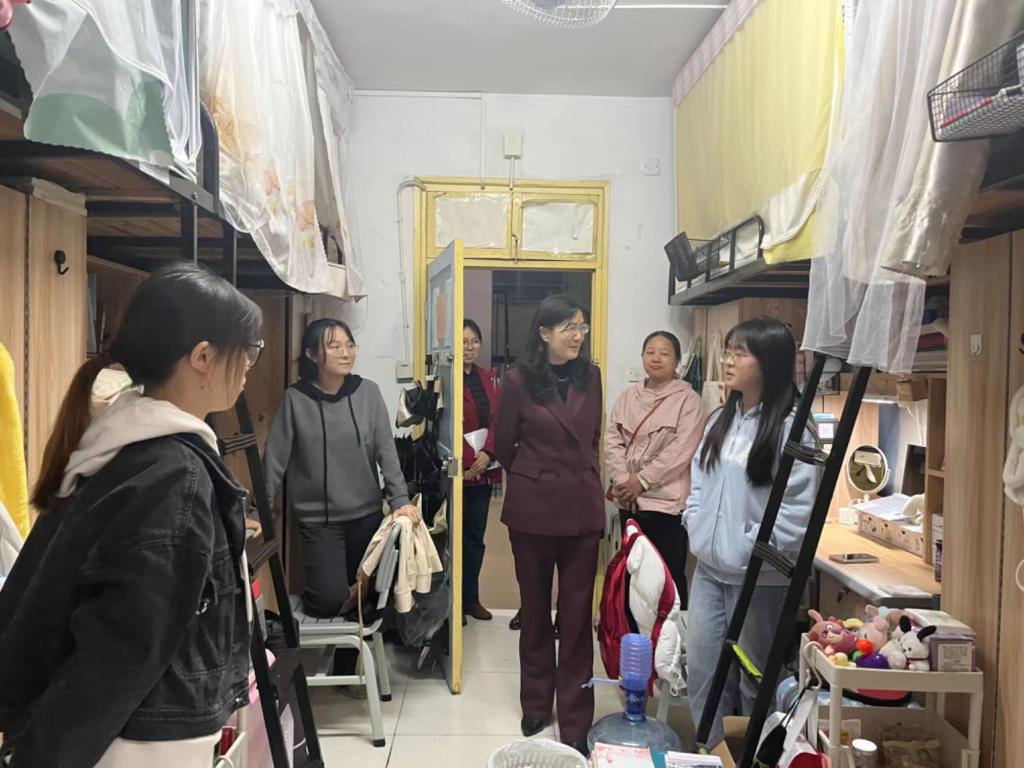 蒋校长首先检查了各学院晚自习、晚修课堂开展情况,接着走进学生公寓等生活区域,查看公寓周围安全工作落实情况,关心一站式学生社区建设推进情况,要求各学院继续扎实做好六进公寓工作,引领学生创建文明、整洁、向上的生活环境。在检查校园安防监控中心过程中,蒋校长与成海英部长详细交流校园安全稳定工作的重要性,要求院系部门协同联动压实安全责任,共同守护校园安全稳定。
